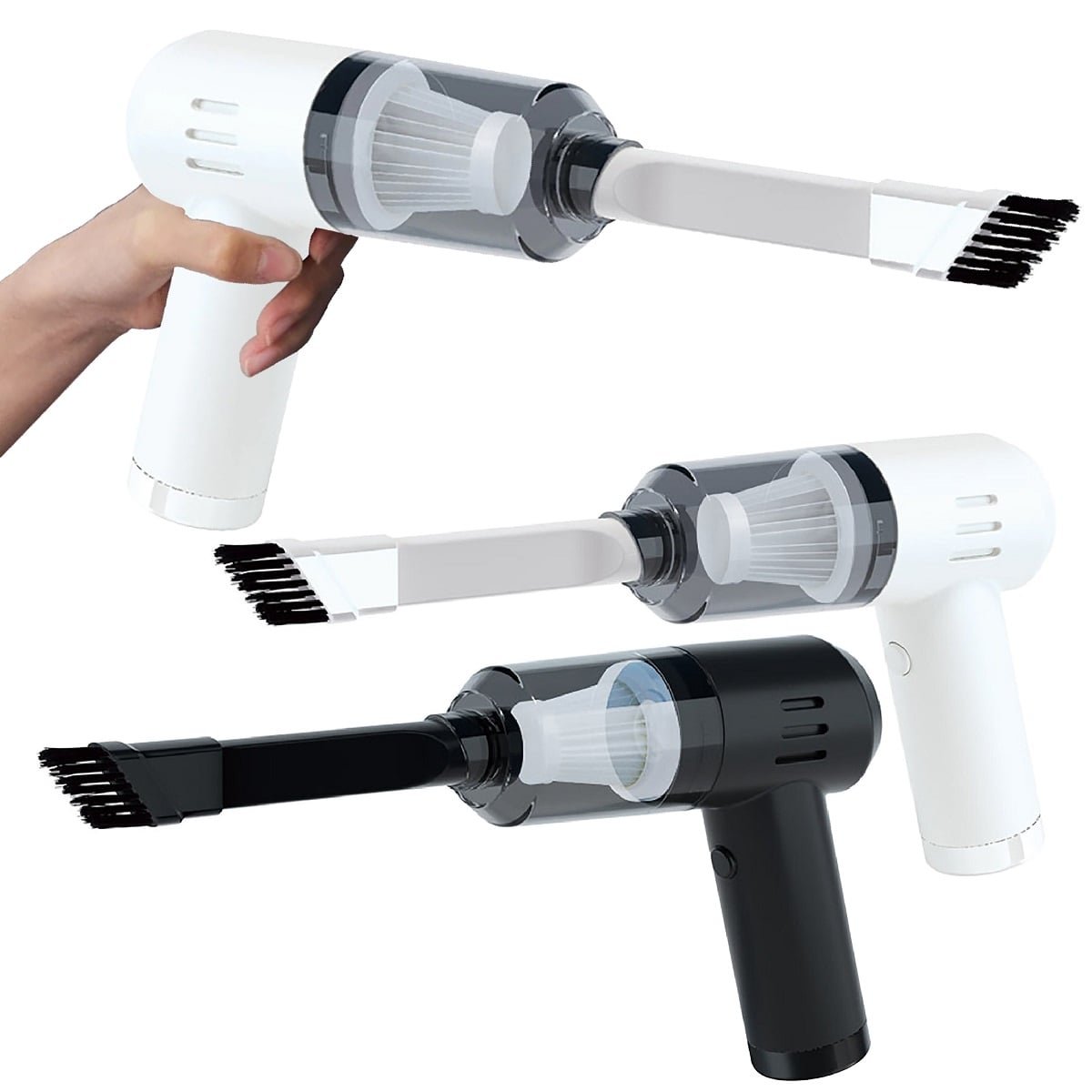 La aspiradora portátil tipo recargable es un dispositivo compacto y potente, ideal para limpiar espacios pequeños de forma rápida y práctica.