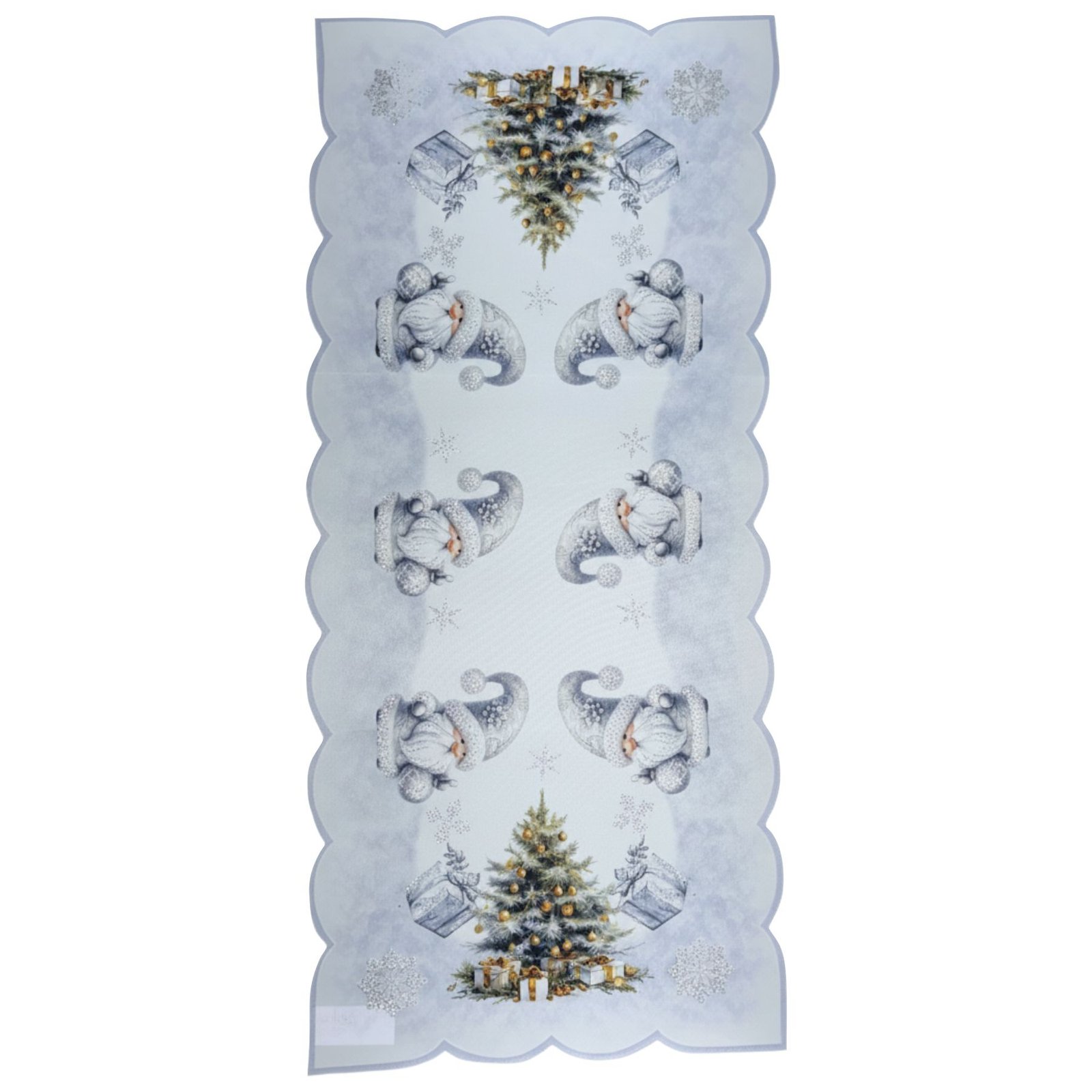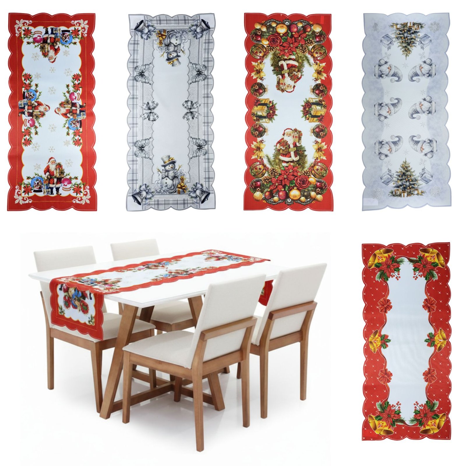 Se coloca centrado a lo largo de la mesa, solo o combinado con manteles individuales, vajilla y decoración navideña como velas o centros de mesa.