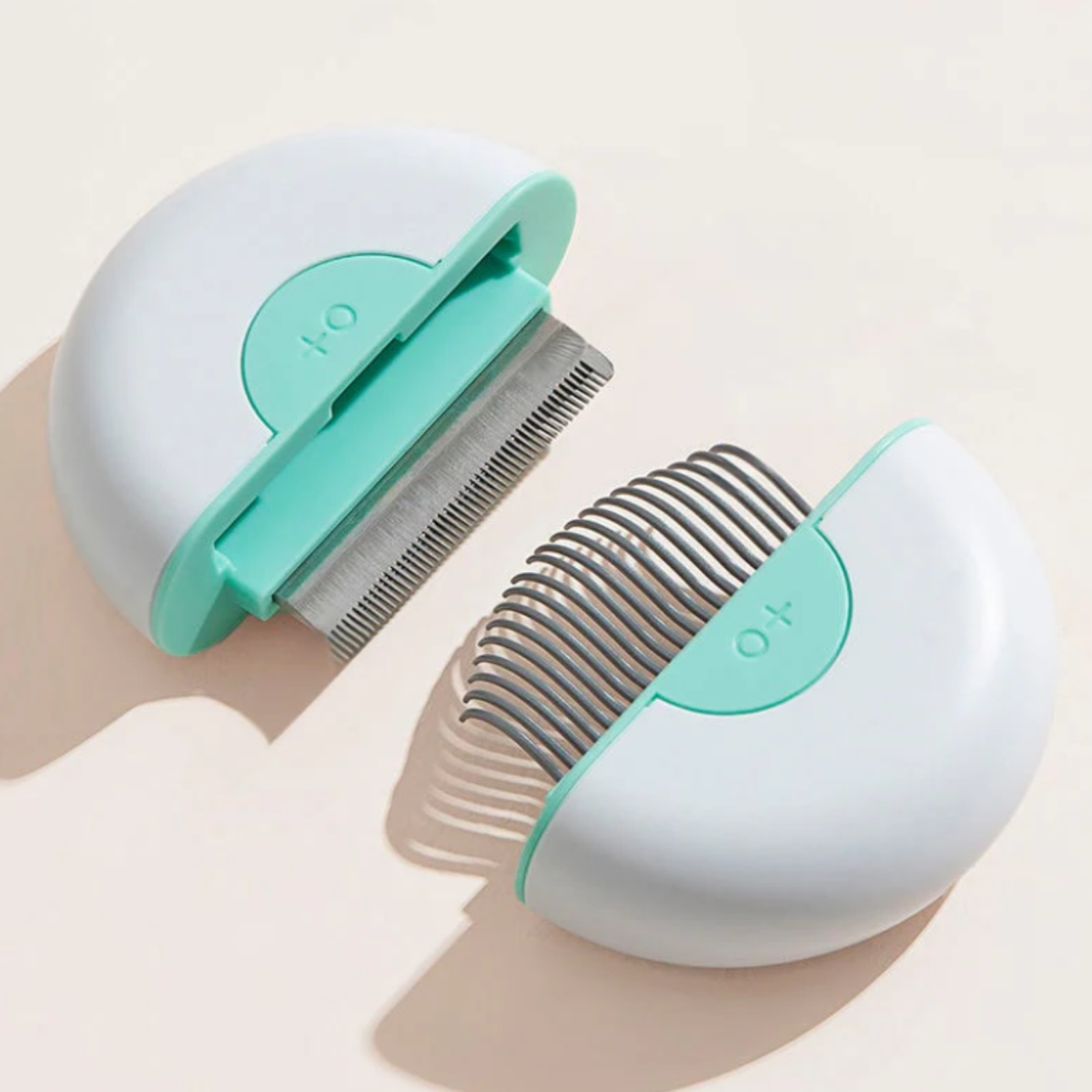 Este cepillo 2 en 1 está diseñado para el cuidado y aseo del pelaje de mascotas de forma práctica y eficiente. Combina dos tipos de peines en un solo accesorio, ideal para desenredar, retirar pelo suelto y mantener el pelaje limpio y saludable.