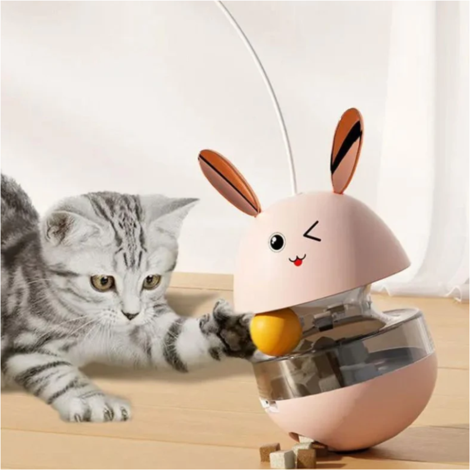 Este juguete interactivo con diseño de conejo está pensado para estimular la mente y el instinto de caza de tu gato mientras se divierte y recibe premios.