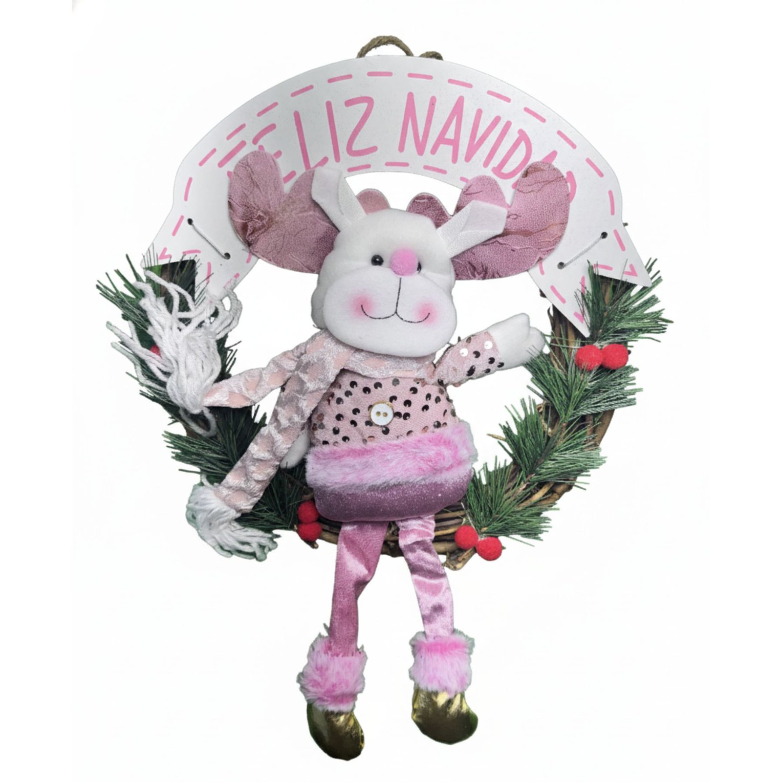 Sirve para decorar puertas, paredes o ventanas, creando un ambiente acogedor y navideño desde la entrada del hogar.