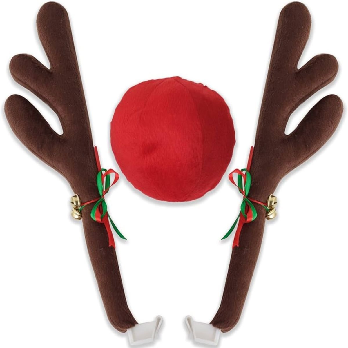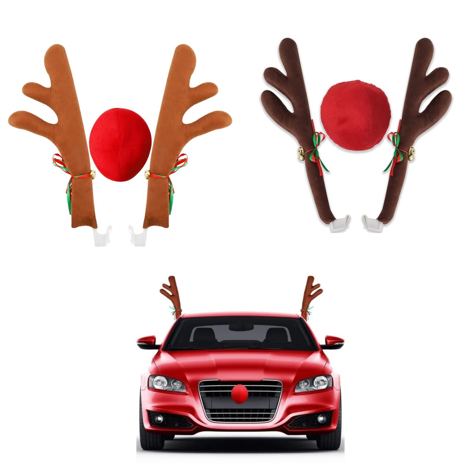 El Adorno Reno para Carro es un kit decorativo navideño que transforma tu vehículo en un simpático reno. Incluye un par de cuernos que se colocan en las ventanas y una nariz roja para la parte frontal, creando un diseño llamativo y festivo ideal para la temporada.