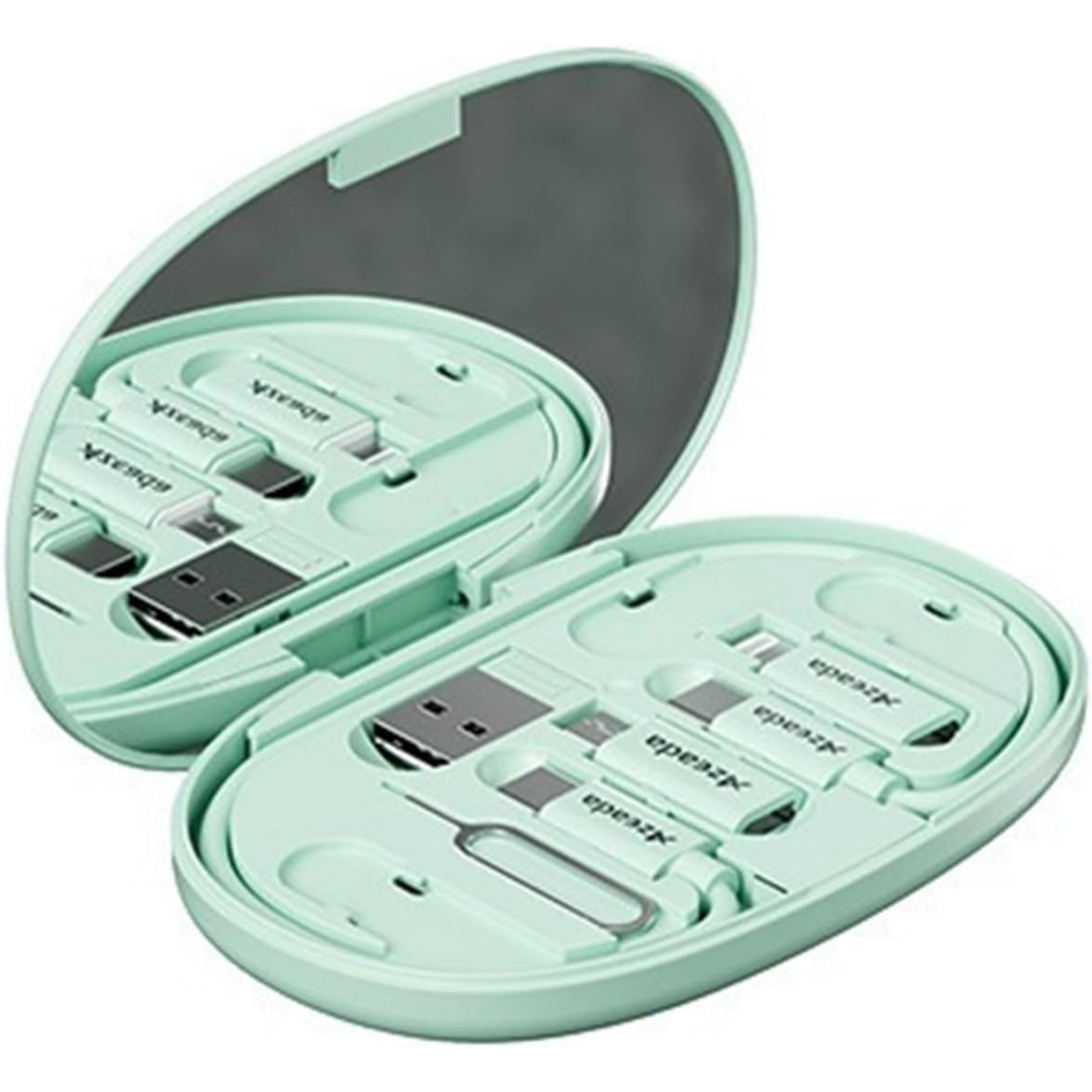 Abre el estuche, coloca los cables y adaptadores en los compartimentos internos y ciérralo. Utiliza el espejo cuando lo necesites y llévalo fácilmente en tu bolso o mochila.