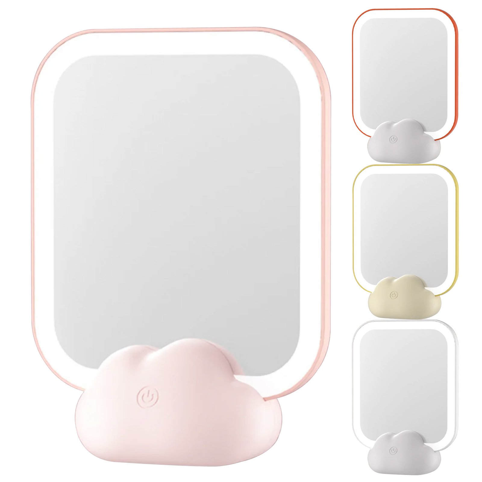 Este espejo con luz LED está diseñado para brindar una iluminación suave y uniforme durante el maquillaje, el cuidado facial o el arreglo personal. Su base con forma de nube le da un toque delicado y moderno, ideal para decorar y complementar cualquier tocador o espacio personal.