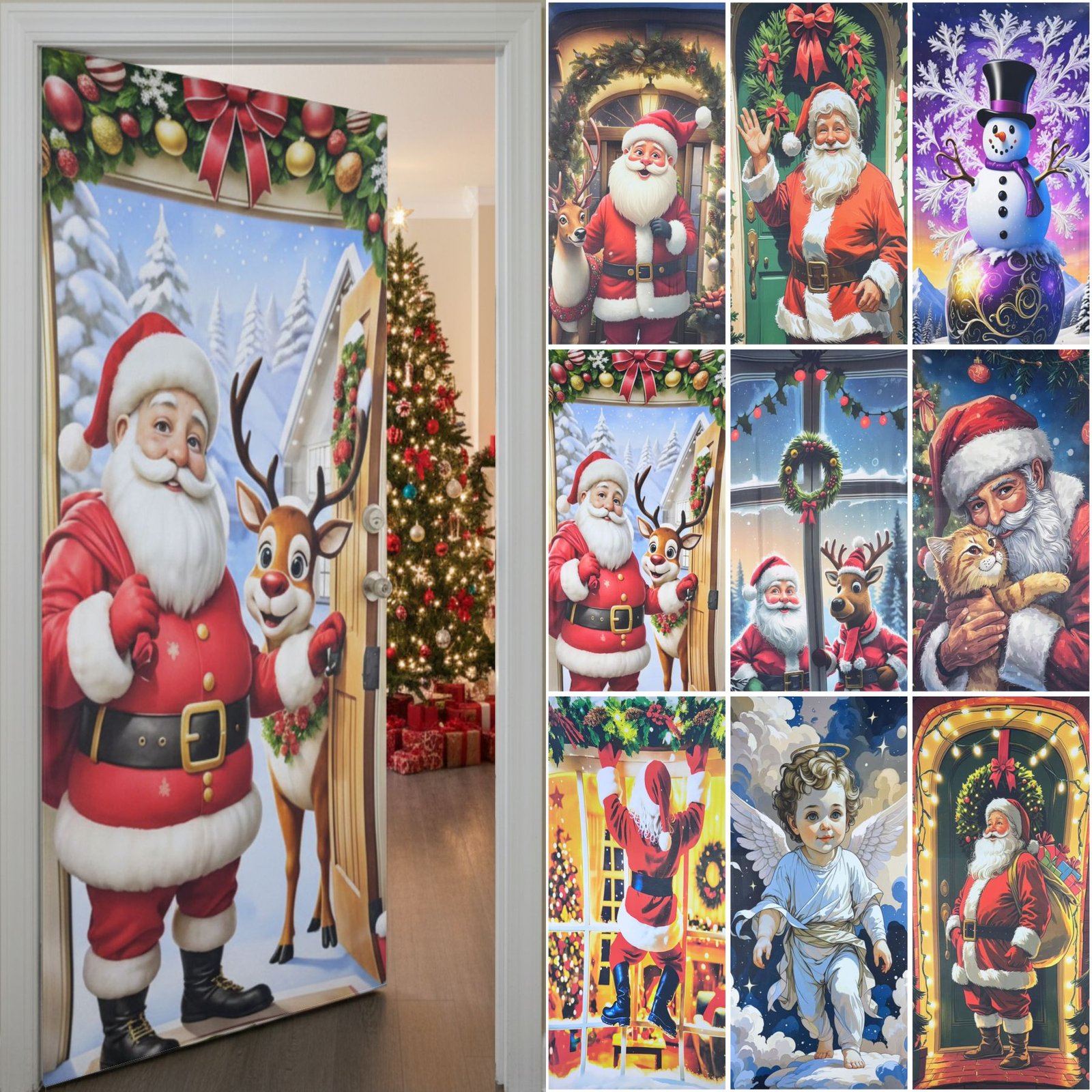 Sirve para decorar puertas de entrada, interiores o exteriores, creando un ambiente navideño sin necesidad de colocar múltiples adornos. Es perfecta para hogares, oficinas, negocios o eventos temáticos.