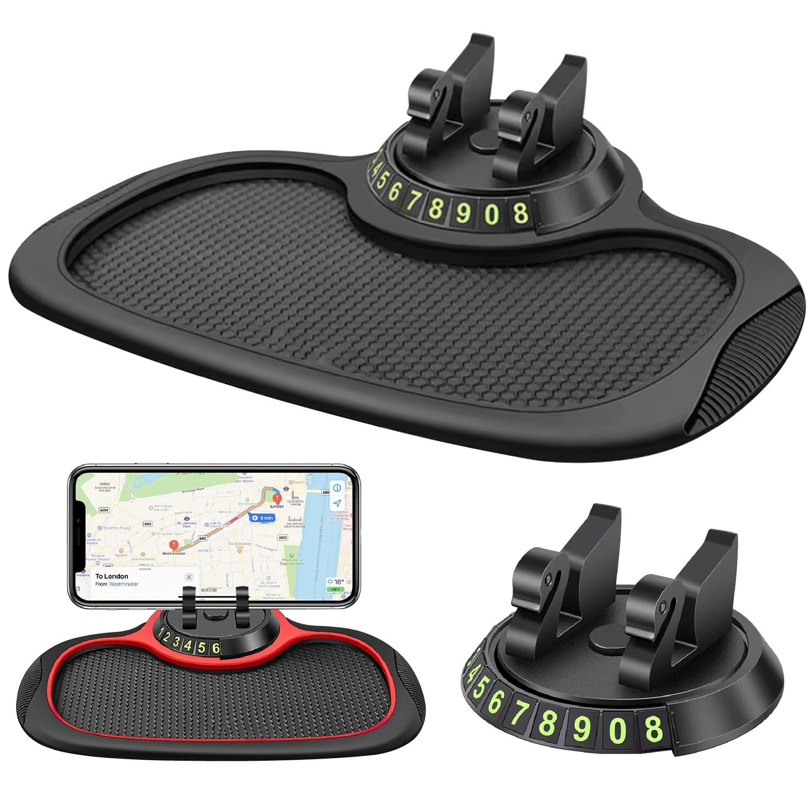 Solo debes colocarlo sobre el tablero del auto y apoyar el objeto encima. No requiere pegamento ni tornillos. Incluye un número telefónico giratorio, ideal para dejar tu contacto visible en caso de estacionar el vehículo.