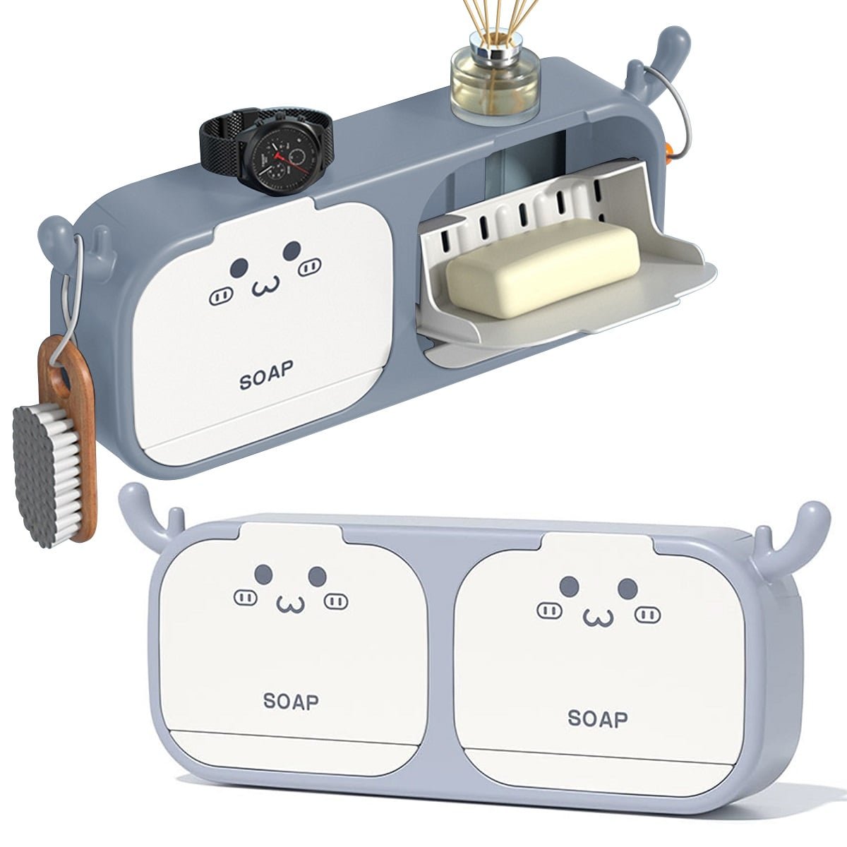 La Jabonera Doble con Ventana es un organizador práctico y decorativo para baño o cocina. Cuenta con dos compartimentos independientes con tapa y ventana frontal, permitiendo almacenar y proteger dos jabones al mismo tiempo. Su diseño moderno incluye ganchos laterales para colgar accesorios.