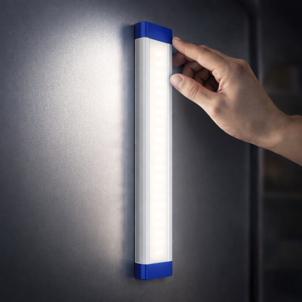 Es una lámpara LED portátil y recargable diseñada para ofrecer iluminación práctica en diferentes espacios. Cuenta con sistema magnético en la parte posterior que permite instalarla fácilmente en superficies metálicas.