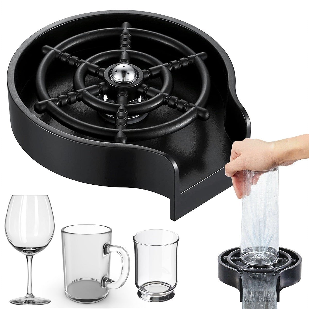 Sirve para eliminar residuos de bebidas como café, jugos, vino, cerveza o batidos, dejando los vasos completamente enjuagados con solo presionarlos sobre la base. Es perfecto para mantener la higiene y agilizar el trabajo en zonas de alto uso.