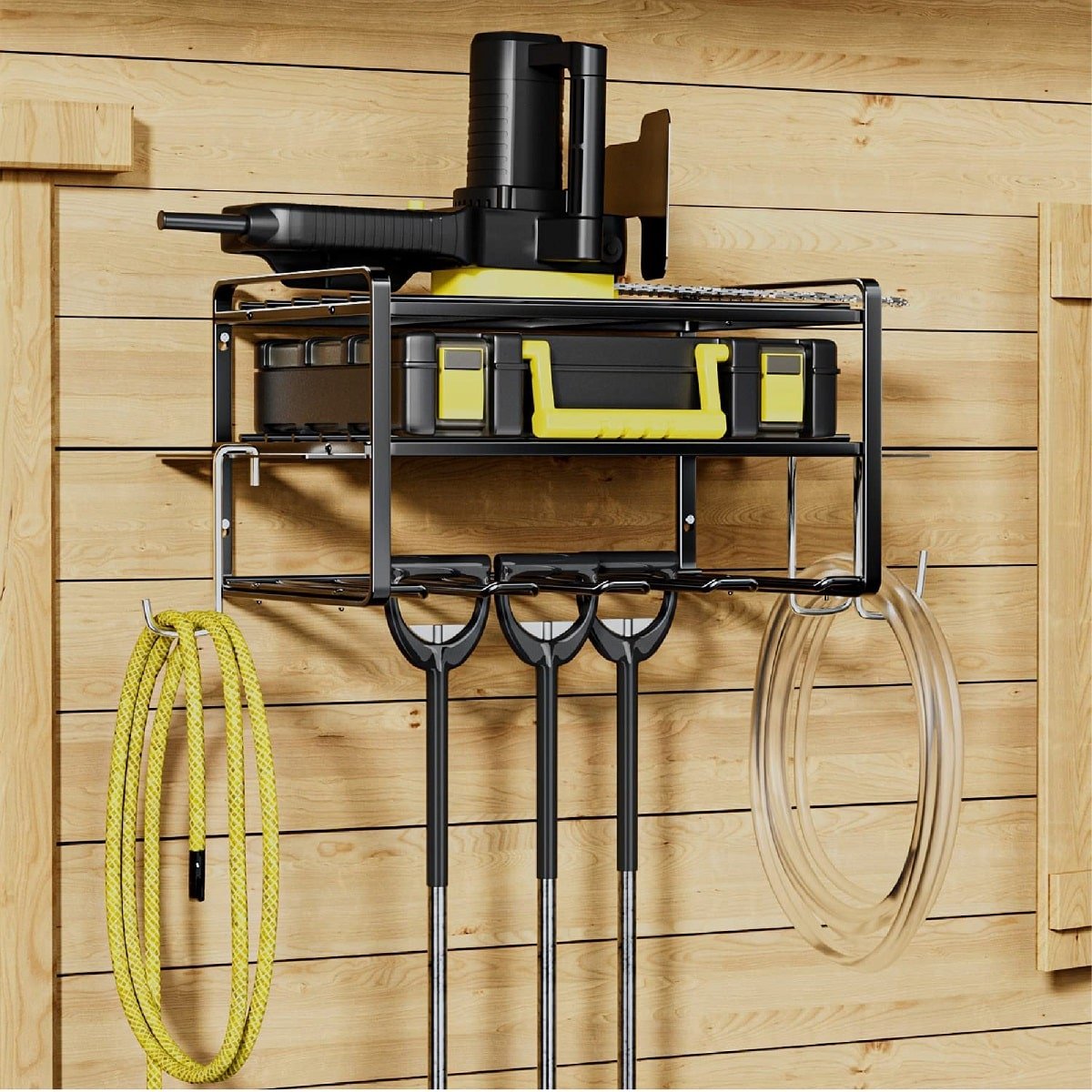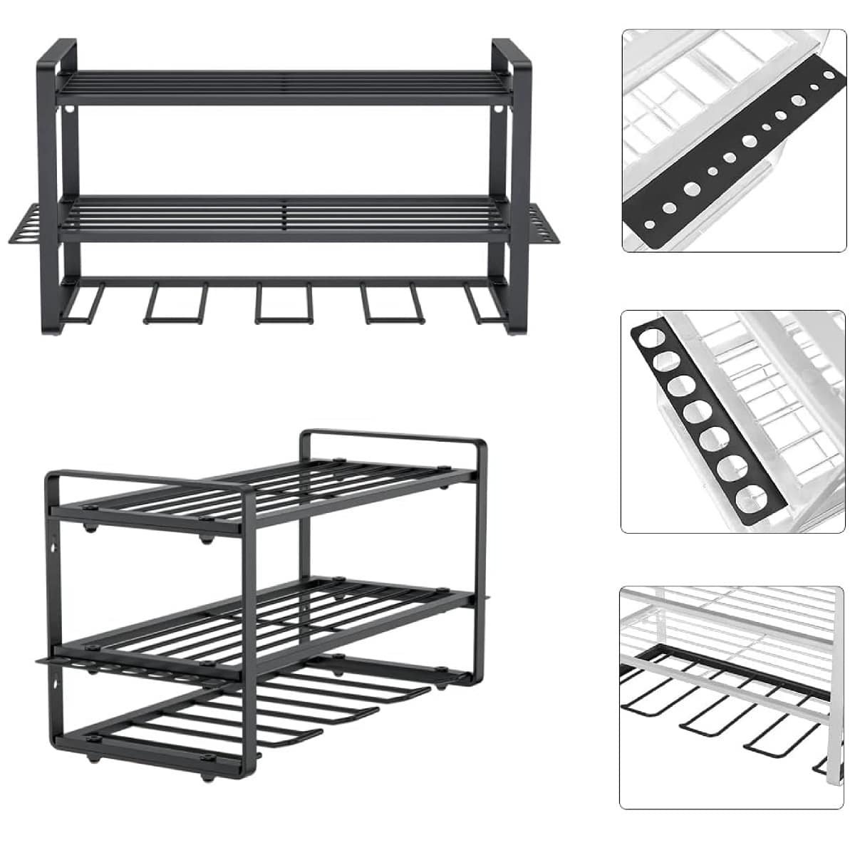 Resistente y duradero: todo el estante de herramientas adopta un marco de hierro, que es fuerte y duradero. Su capacidad de carga máxima total es de aproximadamente 50 libras, y las dimensiones después de la instalación son: 18.5 x 7.7 x 8.5 pulgadas (± 0.2 pulgadas) (incluyendo ranuras en ambos lados)